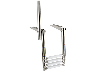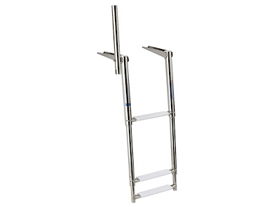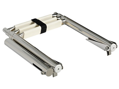 Provvista di maniglia pieghevole/abbattibile per facilitare la risalita a bordo. Realizzate in acciaio inox AISI 316 lucidato a specchio. Finitura eccezionale, gradini ovali con pedana in plastica bianca.