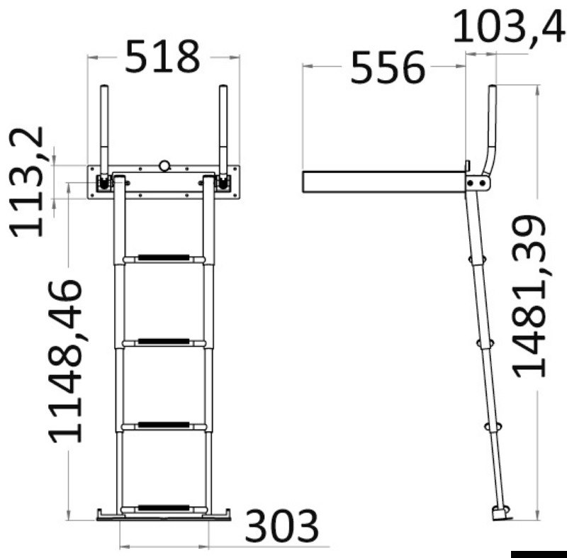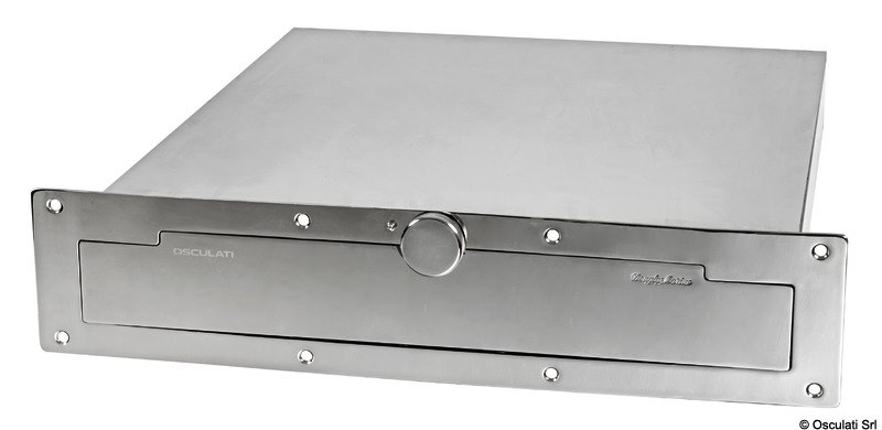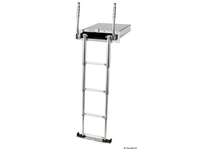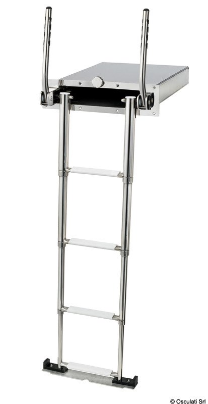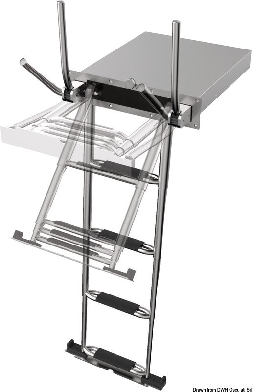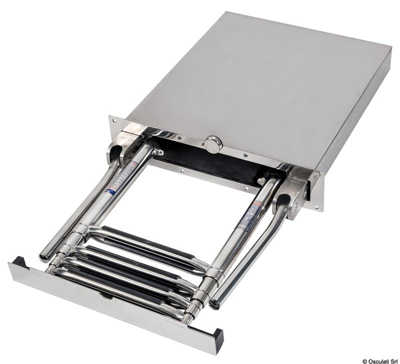 Scaletta telescopica ad incasso con maniglie, in acciaio inox AISI316 a 4 gradini, e meccanismo di chiusura maniglia che facilita il recupero della scaletta dalla plancia.
