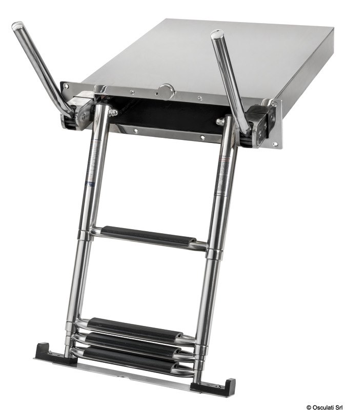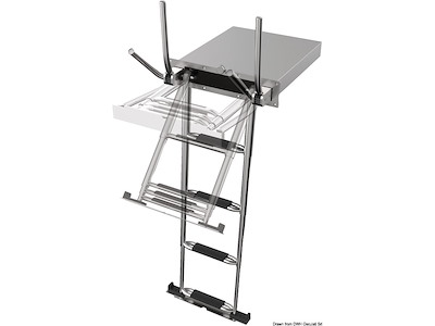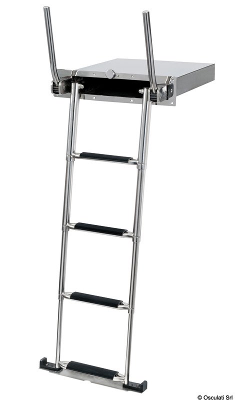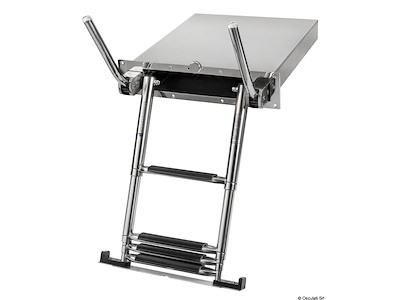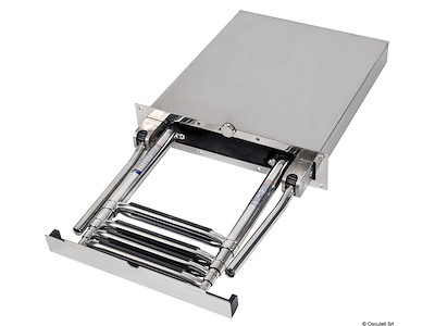 Scaletta telescopica ad incasso in acciaio inox AISI316 a 4 gradini. Dotata di maniglie di risalita integrate che si alzano e si abbassano automaticamente ruotando la scaletta.