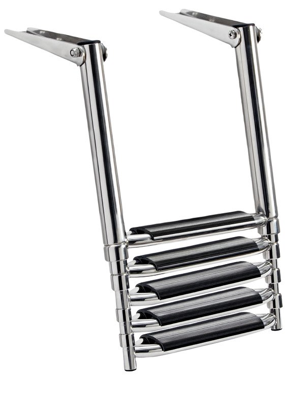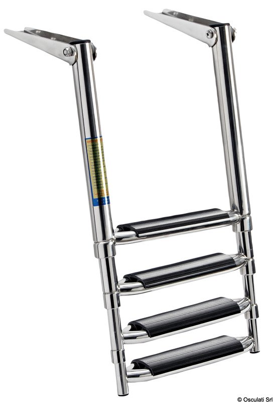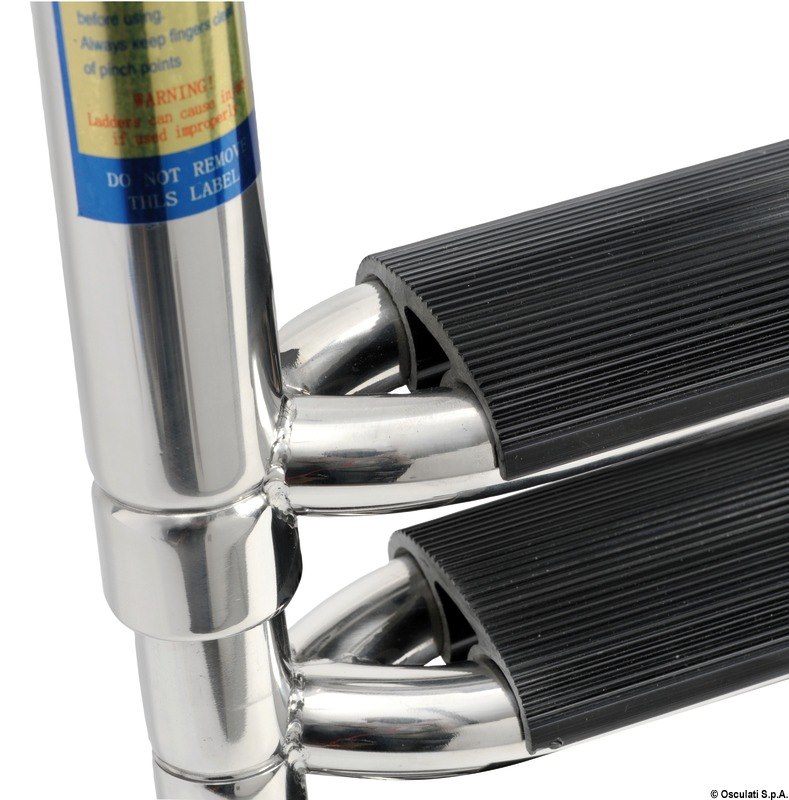 In acciaio inox lucidato a specchio, con gradini profondi 57 mm per un maggior comfort.