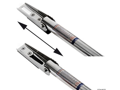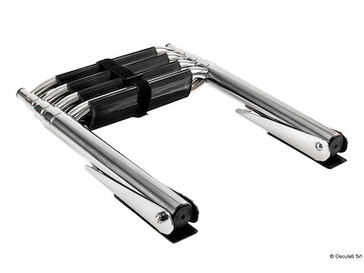 In acciaio inox AISI 316 con gradini larghi 57 mm per un maggior comfort. Interasse tubi 305 mm. Dotata di sistema con piastre scorrevoli che permettono il completo rientro della scaletta all’interno del profilo della plancetta stessa, senza lasciare parti sporgenti quando non in utilizzo.