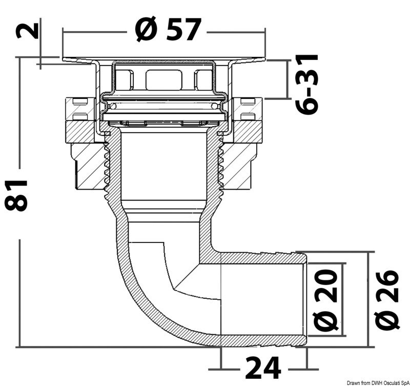 Corpo in fibra acetilica rinforzata. Testa in acciaio inox 316 e filtro removibile.
