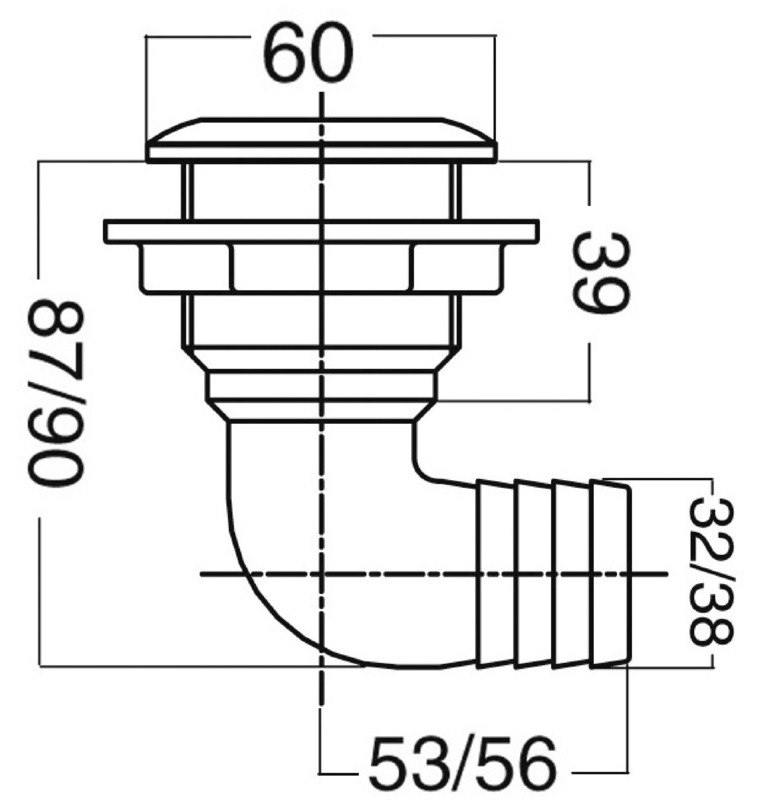 Scarico a mare a gomito 1" 1/2 x 32 mm