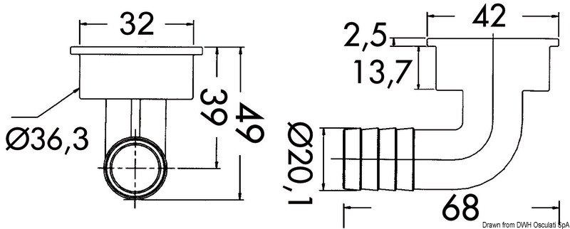 In acciaio inox AISI 316. La parte superiore è avvitata e questo permette di montarlo su vari spessori.