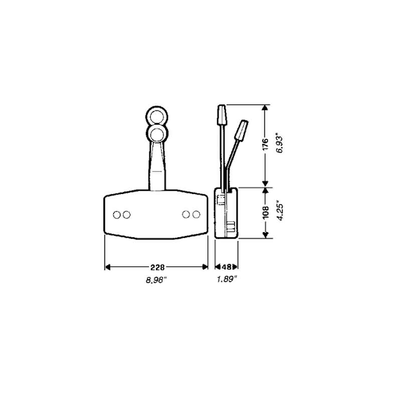 Scatola comando con applicazione a parete destra o sinistra, corpo in ABS e leve anticorodal. Adattabile su qualsiasi tipo di motorefuoribordo. Corredata dei sottoelencati kits, utilizza i seguenti cavi: C2 - C8 - Mach Zero - 33C con kit K25 per motori Yamaha - Suzuki - Chrysler- Mariner. C5 e Mach 5 per motori Mercury senza kit. C14 con kit K23 per motori OMC dal 1979.C16 per motori Mariner senza kit.