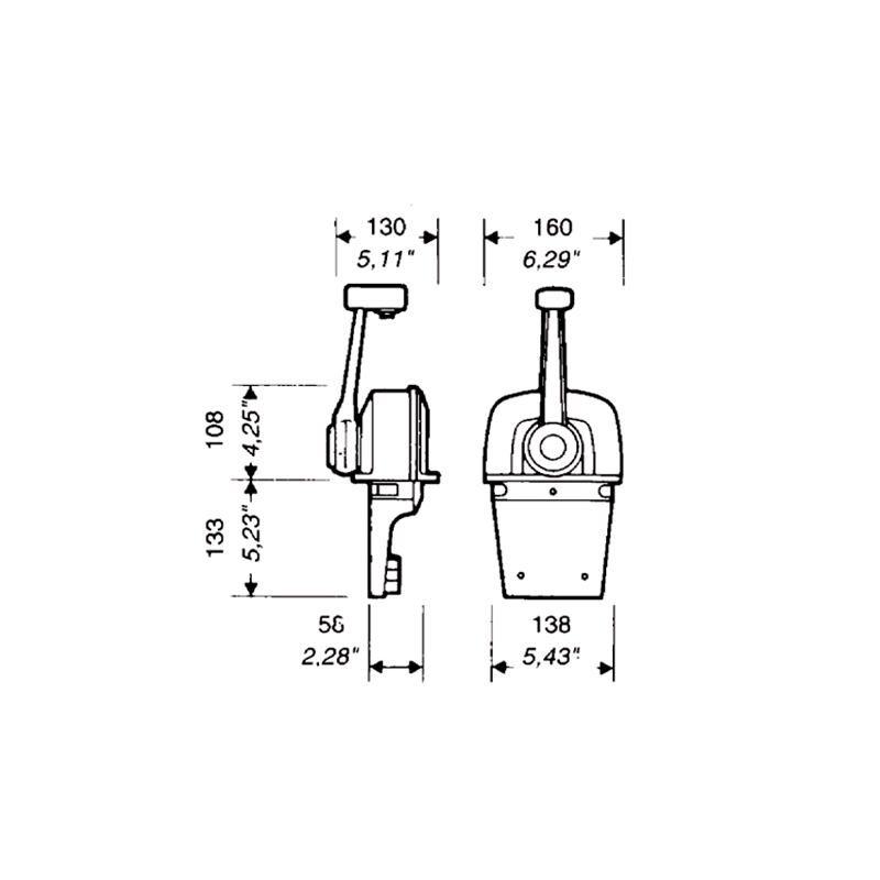 Scatole di comando versione monoleva per un motore ad azione doppia per il controllo del gas e dell’invertitore. Adatte a qualsiasi tipo d’imbarcazione con motore fuoribordo, entrobordo e gruppi poppieri provvisti d’invertitore idraulico. Rendono più facile e sicura la guida evitando automaticamente I’innesto dell’invertitore se il gas non é al minimo. Sono realizzate in alluminio pressofuso, verniciate o cromate. Tirando fuori la leva si disinnesta I’invertitore durante I’operazione di riscaldamento del motore. Mediante I’interruttore di sicurezza X12 (optional), I’avviamento del motore si ottiene solamente con I’invertitore in posizione di folle. I modelli con trim presentano nell’impugnatura un interruttore che permette la regolazione dell’alzo piede dei motori fuoribordo e nei gruppi poppieri. Utilizzano i cavi per il comando motore C2-C8-C14 e Mach 0-14. Con il cavo C5-C16 e Mach 5 occorre il kit di adattamento K35 art. 4242069. cavo: C2 - C8 - C14 - MACH 0/14 - CON KIT K35: C5 - C16 - MACH 5 Trim: NO