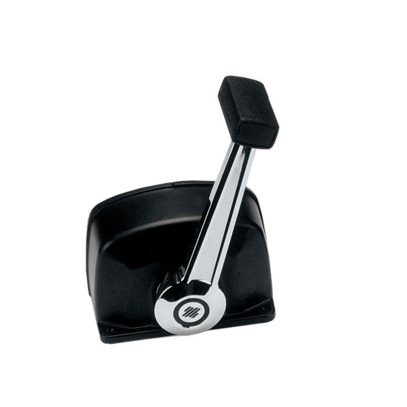 Scatole di comando versione monoleva con trim per un motore ad azione doppia per il controllo del gas e dell’invertitore. Adatte a qualsiasi tipo d’imbarcazione con motore fuoribordo, entrobordo e gruppi poppieri provvisti d’invertitore idraulico. Rendono più facile e sicura la guida evitando automaticamente I’innesto dell’invertitore se il gas non é al minimo. Sono realizzate in alluminio pressofuso, verniciate o cromate. Tirando fuori la leva si disinnesta I’invertitore durante I’operazione di riscaldamento del motore. Mediante I’interruttore di sicurezza X12 (optional), I’avviamento del motore si ottiene solamente con I’invertitore in posizione di folle. I modelli con trim presentano nell’impugnatura un interruttore che permette la regolazione dell’alzo piede dei motori fuoribordo e nei gruppi poppieri. Utilizzano i cavi per il comando motore C2-C8-C14 e Mach 0-14. Con il cavo C5-C16 e Mach 5 occorre il kit di adattamento K35 art. 4242069.
