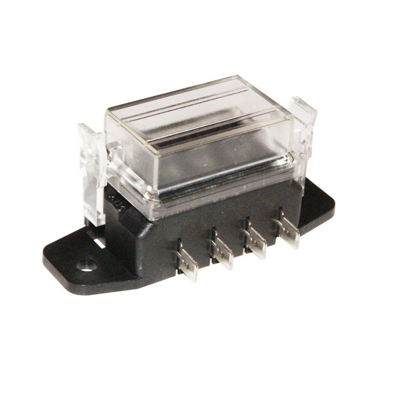 Scatola portafusibili lamellari standardcon coperchio trasparente e guarnizione di tenuta, terminali faston. Base mm. 100x27.