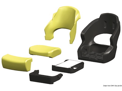 Kit formato da scocca in plastica + parte anteriore ruotante + imbottitura pronto per essere rivestito.