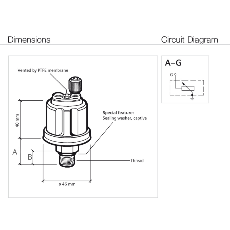 Con bulbo a Massa, connessione con dado zigrinato M4 per terminale ad occhiello. - Art. Vdo 360-081-029-004C