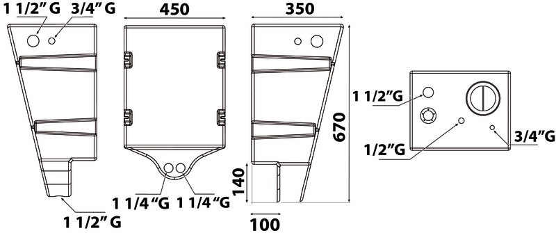 Progettato per essere svuotato per gravità , senza impiego di alcuna pompa. Completo di filettature femmina da 3/4" - 1" 1/2 per carico, 1" 1/4 per scarico, sfiato + flangia indicatore livello. Fabbricati secondo ISO 8099.