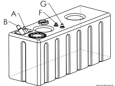 Fabbricato secondo ISO 21487. Certificati RINA - CE. Completo di pescante orientabile in ottone. Flangia protetta a 5 fori tipo VDO per installazione galleggiante (vedi 27.160.xx; 27.161.xx; 27.165.xx).