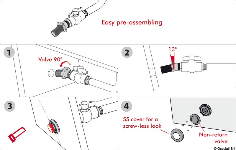 • Pre-assemblaggio della saracinesca e portagomma a banco (versione filettata);