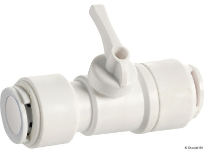 Montaggio Istantaneo a scatto. Basta una semplice pressione del tubo sul raccordo per il montaggio. Il raccordo é riutilizzabile , basta sostituire l’anello di ritegno. La raccorderia é in poliammide ed i tubi in polietilene . Raccordi omologati RINA con certificato MAC/119897/1TO/98. Ø - mm: 15 Descrizione prodotti: Valvola d"intercettazione