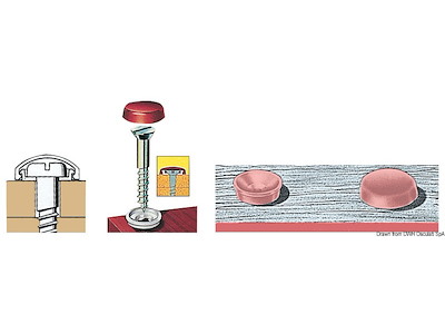 Orli sottovite completi di copritesta a scatto. Sono fabbricati in polipropilene UV stabilizzato e garantiscono, con un costo irrisorio, finiture accurate, impermeabilità e resistenza alla corrosione; da accoppiare con viti a testa svasata piana autofilettanti a legno o a metallo.