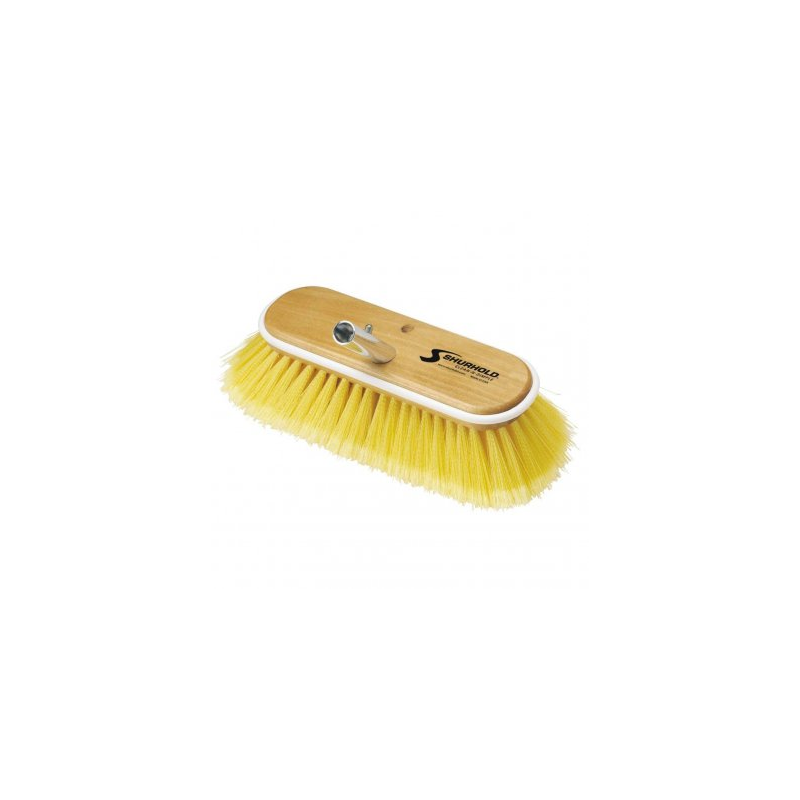Spazzola con setole in poliestere giallo. Sicura su superifici verniciate o facilmente graffiabili come il plexiglass, gelcoat, rivestimenti trasparenti, fibre di vetro e vernici. Dimensioni mm 250