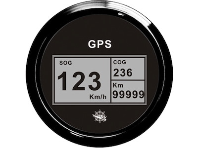 Non richiede trasduttore ed è fornito completo di antenna GPS 32 canali. - Tipo 1: Spidometro / bussola: indica in modo analogico la velocità 0-45 nodi ed in digitale la rotta bussola (di grado in grado). - Tipo 2: Spidometro / totalizzatore / bussola: indica in modo digitale la velocità 0/999 nodi, Km/h o MPH, la distanza percorsa fino a 99999 miglia e la rotta bussola (di grado in grado). Quadrante retroilluminazione sia rossa sia gialla.