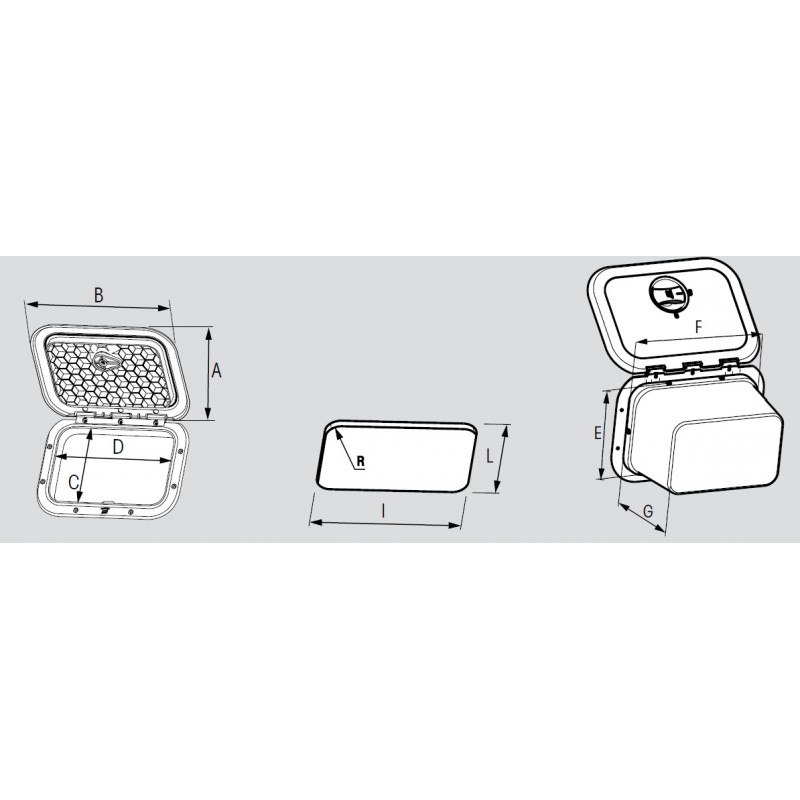 Sportello bianco resistente ai raggi UV. Ottima resistenza meccanica, esaltata dalla struttura a nido d’ape all’interno del portello. Calpestabile: resiste a un carico di 130 kg senza alcuna deformazione. Apertura di 180°. Montaggio a parete o su ponte. Guarnizione in gomma EPDM per una perfetta tenuta stagna. Fornito con un set di 2 cerniere che consentono diverse alternative di installazione: cerniera articolata classica con apertura a 180°, oppure cerniera specifica che rende il portello smontabile.