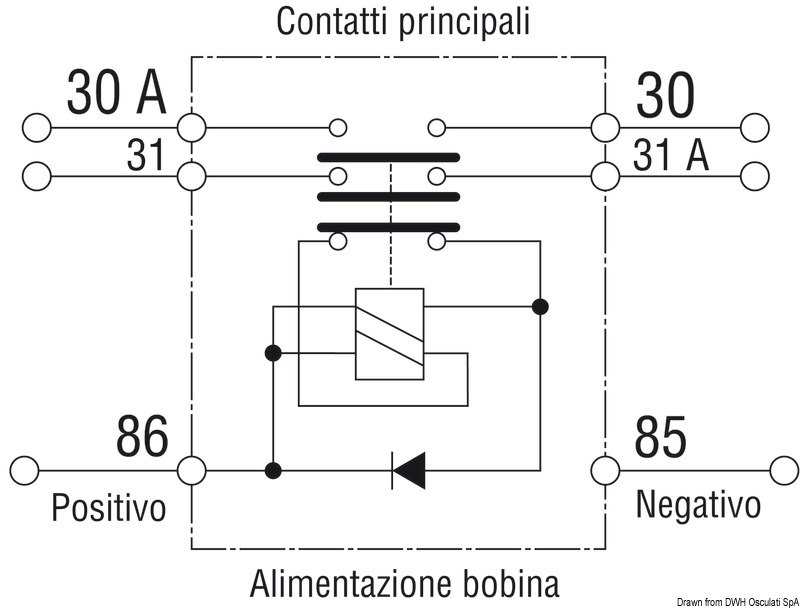 Può gestire 2 banchi batteria. Si collega sotto chiave, se si vuole togliere completamente la corrente in modo automatico (in questo caso la chiave d’avviamento ha bisogno di uno scatto supplementare) oppure semplicemente con un interruttore ON-OFF indipendente dalla chiave, che può anche essere nascosto a far da antifurto. Grado protezione IP65, contatti in rame argentato. Stacco del positivo o del negativo.