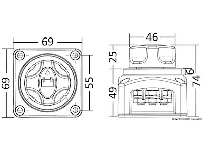 Uscita dei cavi possibile su 4 lati. Capacità max A 50V DC - per 30 sec: Capacità max A 50V DC - in continuo: Capacità max A 50V DC - intermittente: Ø perni mm: misure mm: