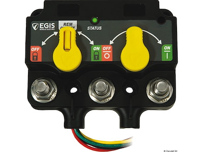 - Relè di disconnessione batteria bistabile: comando remoto ON / OFF tramite switch o segnale di controllo;