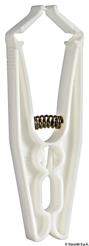 Fabbricate in plastica, tramite ingegnoso sistema di sicurezza, permettono di evitare l'apertura della molletta anche nelle condizioni più gravose. Molla interna in acciaio inox.