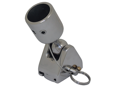 Supporto a cappuccio con perno sfilabile, fissaggio su piano, snodabile da 30° trasversali a 190° longitudinali.