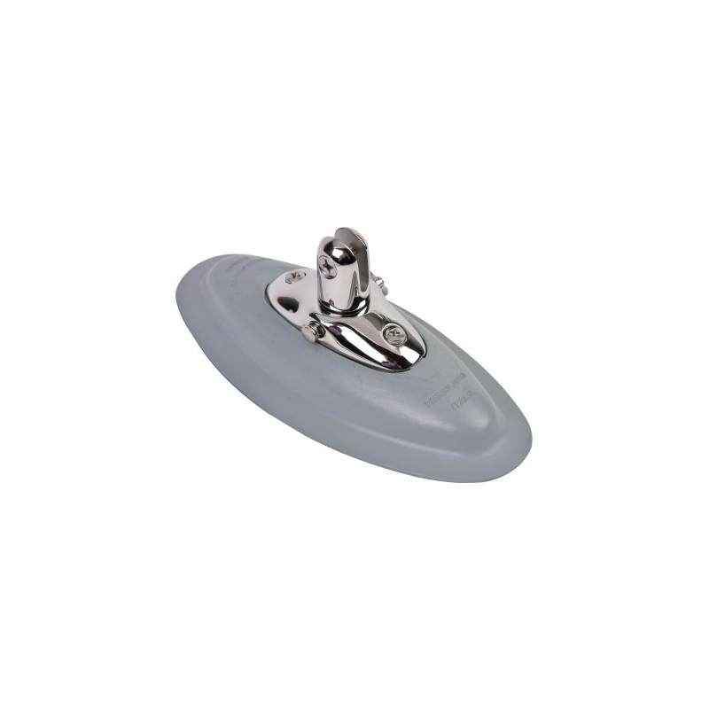 Supporto incollabile in EPDM grigio e forcella in acciaio inox estraibile tramite perno sfilabile a molla per montaggio capottine su gommoni. Dim. mm. 205x10h Dimensioni: 205X10 MM