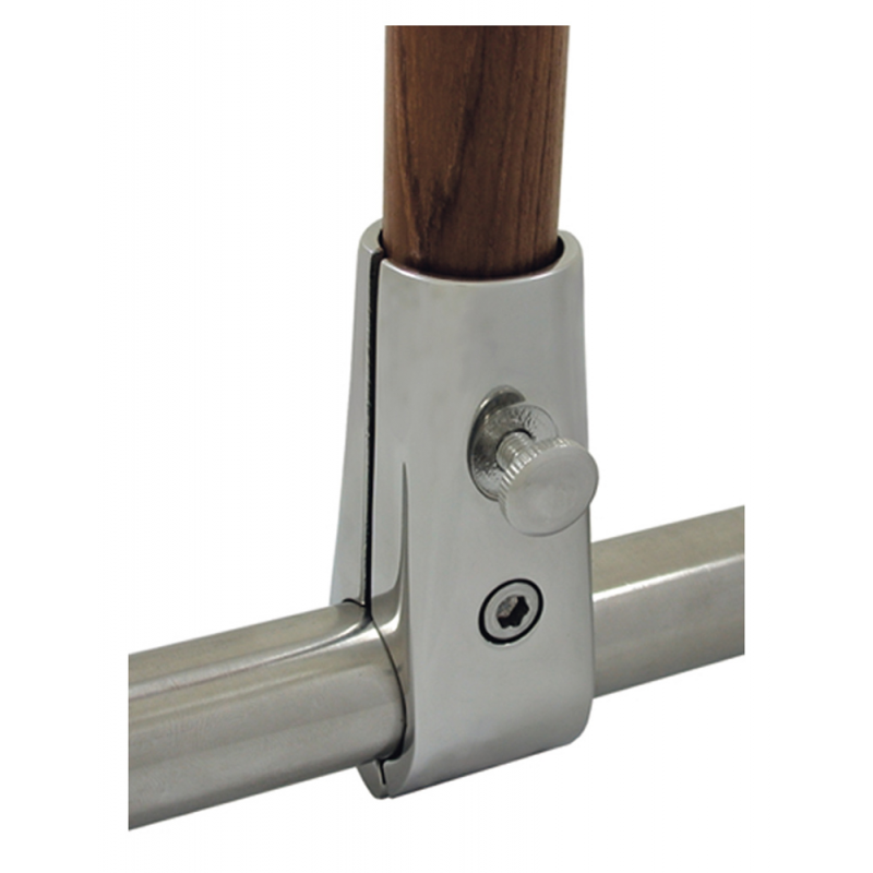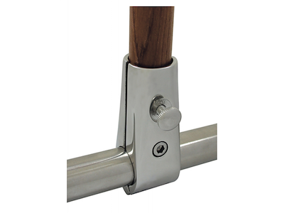 Supporto da pulpito in acciaio inox AISI 316 per aste portabandiera. Fissaggio asta con fermo a vite.