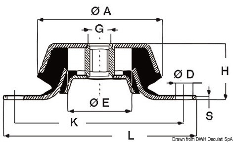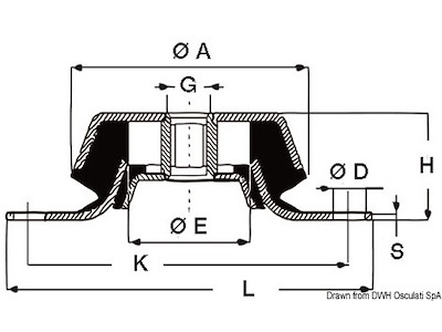 Gomma NBR di alta qualità. Durezza shore 55 +/- 3 , foro femmina. Disponibile sia in acciaio zincato sia in acciaio inox .