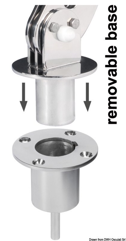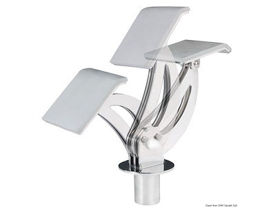 Realizzato in acciaio inox AISI 316 con supporto rivestito in gomma antisdrucciolo. Grazie alla sua particolare forma può virtualmente accogliere ogni forma di carena di tender, moto d'acqua o derive, regolabile con un semplice movimento, senza dover spostare i basamenti installati. I basamenti sono sfilabili, il braccio è disponibile sia nella versione singola che doppia ed il supporto può essere piatto o a V per adattarsi perfettamente a qualsiasi esigenza.