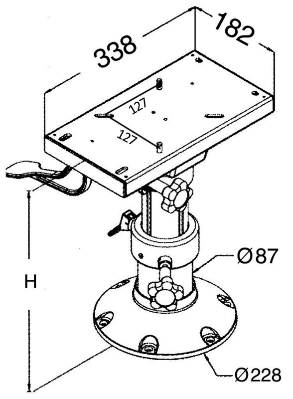 Base e colonna in alluminio lucidato a specchio e anodizzato + supporto sedile con slitta girevole in alluminio anodizzato.