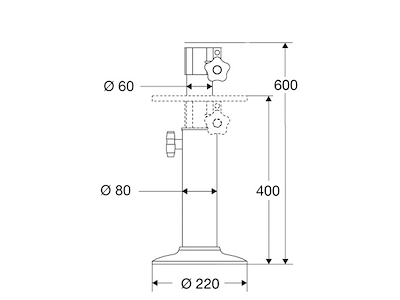 Supporto sedile o tavolo in lega leggera anodizzata, telescopico e girevole.