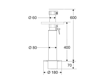 Supporto sedile o tavolo in lega anodizzata, telescopico e asportabile. II tubo si stacca dalla base fissata al pagliolo.