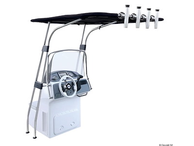 Fabbricati in tubo anodizzato Ø 32 mm. Universale, in quanto gli attacchi possono essere regolati a piacere. Il tessuto del "Top" è in poliestere ATLAS blu 400 g/m2 impermeabile ed UV resistente. Tutti i componenti sono inossidabili.