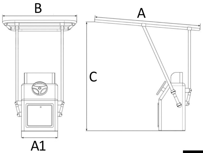 Fabbricato in tubo Ø 44 mm, con raccordi in resina ad alta resistenza e parti saldate di altissima qualità. Universale in quanto gli attacchi alla console possono essere regolati a piacere. Il tessuto del T-Top è poliestere ATLAS da 310 g/m2 impermeabile ed UV resistente.