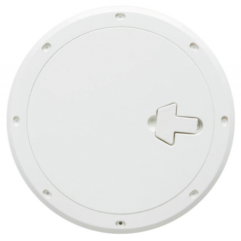 Tappo ispezione in ABS, colore bianco, chiusura a rotazione.