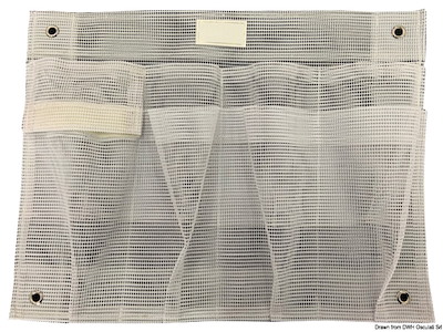 In robusta tela da vela bianca, adatta per stivare cime, maniglie winch, oggetti personali ecc. Completa di occhielli per il fissaggio a parete ed elastico superiore.
