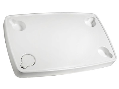 Provvisto di alloggiamenti per tazze, bicchieri, bottiglie che, con appositi tappi in dotazione al tavolo, possono essere livellati per avere una superficie perfettamente liscia.