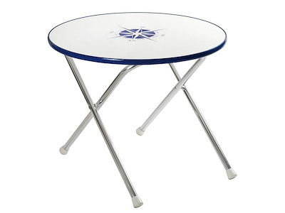 Struttura tubo alluminio anodizzato Ø 25 mm. Ripiano bianco con decoro, spessore 16 mm.