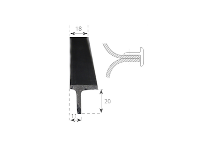 Supporto a TEE in duralene semirigido per L. 35. Barra da 2 mt dim. mm 20 x 18.