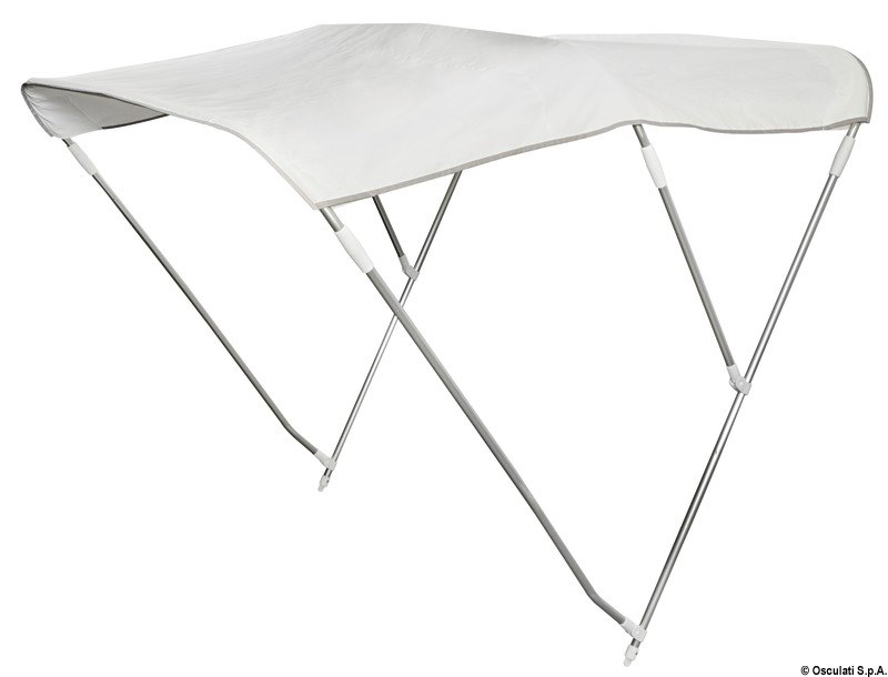 Struttura in alluminio anodizzata, tubo Ø 22 mm. Tessuto poliestere/poliuretano 600D impermeabile e resistente UV. Complete di custodia con cerniera per preservare il tessuto con capottina chiusa.