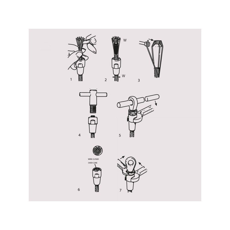 Tenditori in acciaio inox con terminale rapido, completo di due coni per il bloccaggio. Dimensioni: Cavo Ø 3mm. Filetto M6.