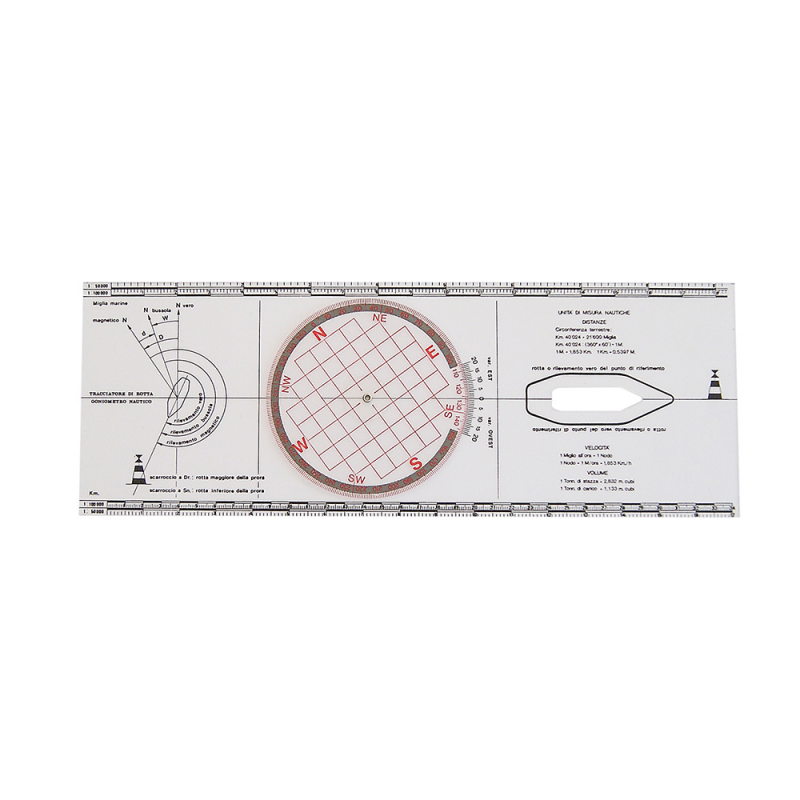 Bussola orientabile con goniometro, permette di misurare le distanze, trasportare un punto rilevato, correggere la declinazione. Lunghezza mm. 350