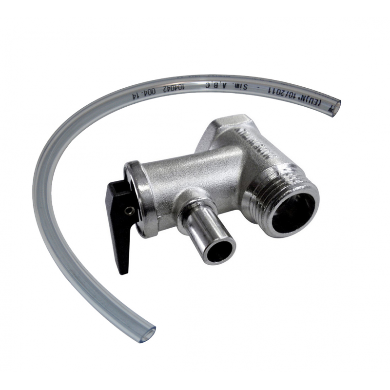 Valvola di sicurezza tarata a 6 Bar (600Kpa). Evita il danneggiamento da sovrapressione dei Boiler permettendo la fuoriuscita del’acqua fino al raggiungimento della pressione massima consentita. Per Boiler modello BX e B3 :