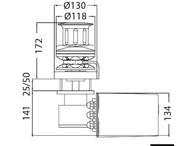 Verricello verticale in acciaio inox AISI 316 con base tonda. Sensore contametri integrato, motore stagno IP67. Consigliato per barche fino a 16 m.