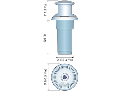 Verricelli da tonneggio, base e campana in bronzo cromato, motore verticale stagno con riduttore epicicloidale. Campana ø mm. 130, Peso Kg. 8,1. Spessore coperta mm. 20÷40. Completo di control box e maniglia. Per barche 11-18 mt. 800W, 24V, Tiro max istantaneo 820 Kg., Velocità di recupero 25,8 mt/min.