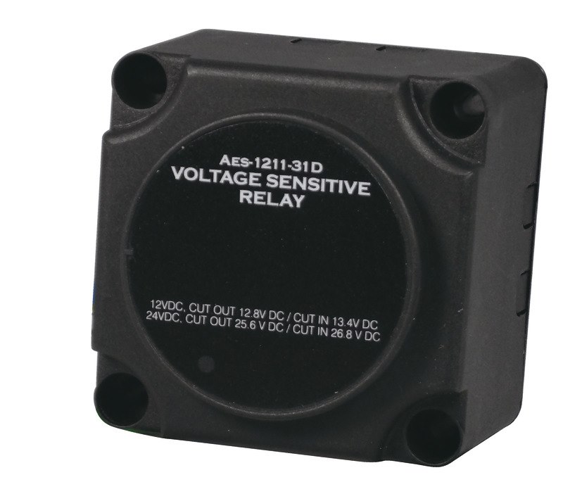 Quando si ferma il motore ed il voltaggio scende sotto 12,8 / 25,2 V, Voltage Sensitive Relay apre il contatto e separa le due batterie, evitando così di scaricare la batteria sbagliata ed evitando altresì i picchi di corrente dannosi per l'elettronica di bordo, quando si riavvia il motore.