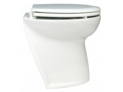 WC elettrico Jabsco in ceramica bianca, caratterizzato da un funzionamento silenzioso. Lo scarico viene attivato con un'unità di controllo touchpad - ha quattro opzioni di scarico.Consumo d'acqua circa 1,0-2,5 L per scarico. Con pompa autoadescante PAR-MAX 2.9 per il lavaggio con acqua di mare.Connessioni: Ingresso pompa di lavaggio 19 mm (3/4") attacco per tubo flessibile, uscita (acqua di scarico) 38 mm (1-1/2").Incluso: Pompa di lavaggio PAR-MAX 2.9, pannello di controllo con supporto a parete e blackboxAssorbimento di corrente 20A, fusibile 25ADimensioni: Larghezza ca. 37,5 cm / Profondità ca. 45,0 cm / Altezza ca. 44,5 cm fino alla parte superiore del coperchio chiuso.