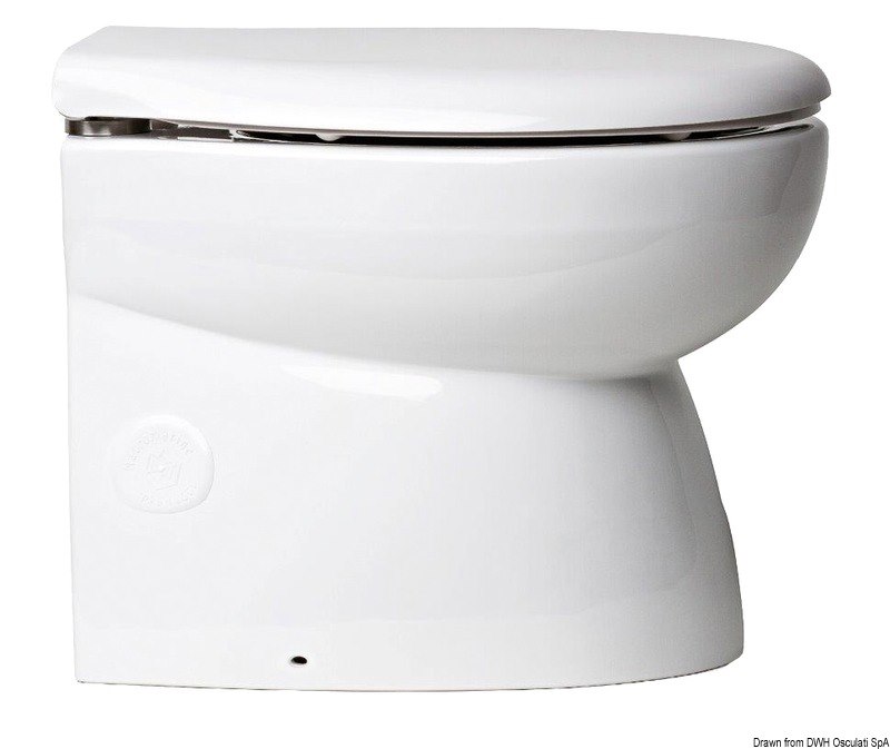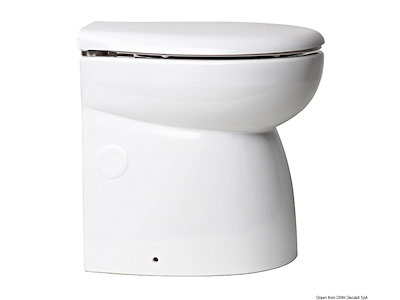 WC carenato con tazza in porcellana bianca. Pompa autoadescante incorporata, avente funzione di aspirazione / scarico acqua + liquidi e di maceratore degli stessi. Tubo aspirazione da 19 mm (3/4”), uscita da 25 mm (1”). Pannello di comando INCLUSO.